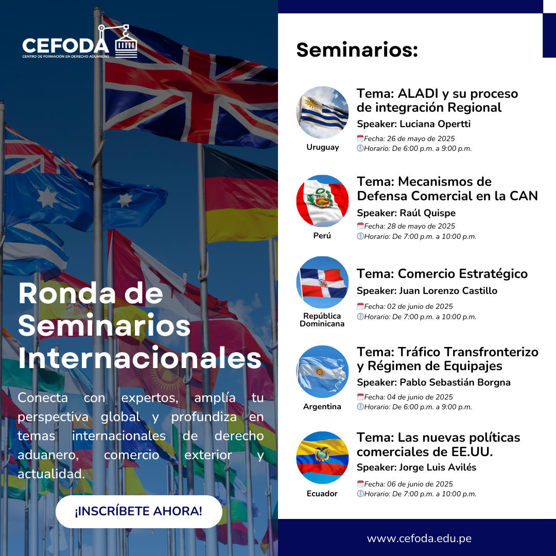 Conéctate con especialistas de más alto nivel de Latinoamérica y profundiza en los desafíos y oportunidades del comercio, la integración económica y aduanas.